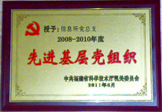 在 6月30日召開的福建省科技廳紀(jì)念中國共產(chǎn)黨成立90周年暨“一先三優(yōu)”表彰大會(huì)上,信息所黨總支被評(píng)為先進(jìn)基層黨總支,另有5人榮獲優(yōu)秀共產(chǎn)黨員、1人榮獲優(yōu)秀黨支部書記、1人榮獲優(yōu)秀黨務(wù)工作者稱號(hào)。