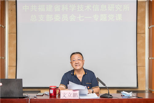 7月1日,在建黨99周年之際,所黨總支負(fù)責(zé)人文立鵬同志為在職黨員及中層以上領(lǐng)導(dǎo)干部作了題為《強(qiáng)化科研機(jī)構(gòu)政治意識,堅定走在前作表率》的專題黨課報告。