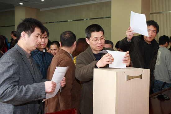 根據(jù)考核組的要求,參會(huì)人員認(rèn)真填寫(xiě)測(cè)評(píng)表,并進(jìn)行現(xiàn)場(chǎng)投票,對(duì)我所領(lǐng)導(dǎo)班子及領(lǐng)導(dǎo)干部2012年度工作進(jìn)行了民主測(cè)評(píng)。