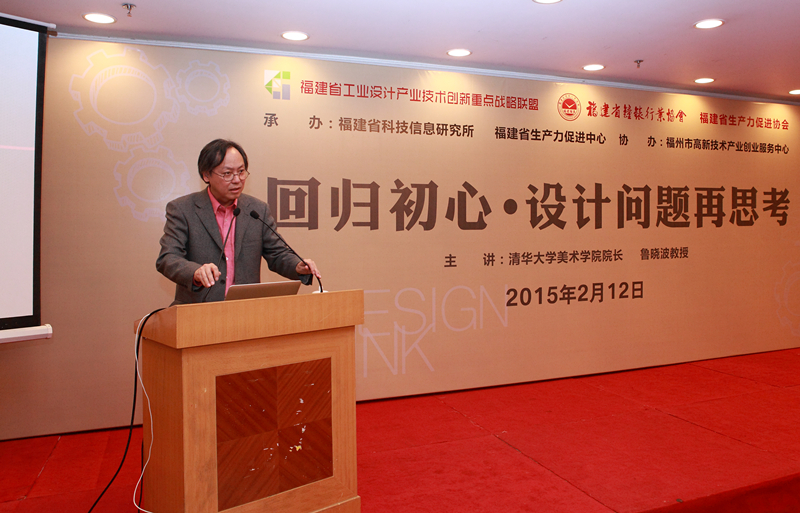 2015年2月12日,應(yīng)福建省工業(yè)設(shè)計(jì)產(chǎn)業(yè)技術(shù)創(chuàng)新重點(diǎn)戰(zhàn)略聯(lián)盟、福建省鐘表行業(yè)協(xié)會(huì)、福建省生產(chǎn)力促進(jìn)協(xié)會(huì)聯(lián)合邀請(qǐng),清華大學(xué)美術(shù)學(xué)院院長(zhǎng)、中國(guó)工業(yè)設(shè)計(jì)協(xié)會(huì)副會(huì)長(zhǎng)、國(guó)際工業(yè)設(shè)計(jì)“紅點(diǎn)”獎(jiǎng)評(píng)委、博士生導(dǎo)師魯曉波教授,在福建會(huì)堂泉州廳作了題為“回歸初心——設(shè)計(jì)問(wèn)題再思考”的專(zhuān)題講座。福建省生產(chǎn)力促進(jìn)中心書(shū)記高一真、福建省鐘表協(xié)會(huì)會(huì)長(zhǎng)蔣莘為大會(huì)致辭,福建省工業(yè)設(shè)計(jì)產(chǎn)業(yè)技術(shù)創(chuàng)新重點(diǎn)戰(zhàn)略聯(lián)盟成員代表和來(lái)自全省各地相關(guān)高校、研究所、科技服務(wù)機(jī)構(gòu)、企業(yè)家及工業(yè)設(shè)計(jì)精英等150多人參加了講座。