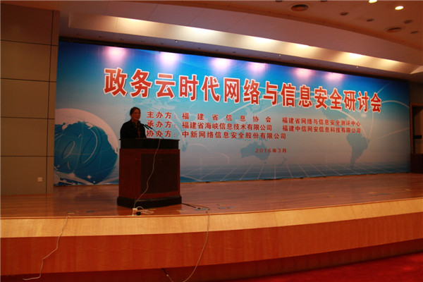 2016年3月31日,由福建省信息協(xié)會、福建省信息與網(wǎng)絡安全測評中心、福建省海峽信息技術(shù)有限公司、福建中信網(wǎng)安科技有限公司聯(lián)合舉辦的“政務云時代網(wǎng)絡與信息安全研討會”在福建會堂順利召開。來自福建省省直政府部門、地市政府部門的200多位嘉賓齊聚一堂,共同探討云計算環(huán)境下政府部門所面臨的信息安全威脅挑戰(zhàn)和應對措施。福建省公安廳網(wǎng)安總隊王鴻開副總隊長、福建省信息協(xié)會會長馬亨冰會長、福建省網(wǎng)絡與信息安全測評中心康仲生總工程師到會指導,海峽信息公司董事長高一真應邀出席會議,并為大會致開幕辭,預祝會議圓滿成功。