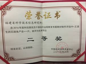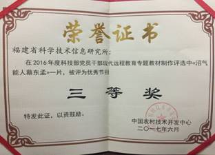 2016年度,我所共制作完成并播出黨員干部現(xiàn)代遠(yuǎn)程教育專題教材21集,時長191分鐘。其中,《王涵生的石斑魚產(chǎn)業(yè)》獲得優(yōu)秀節(jié)目二等獎,《沼氣能人蔡東孟》獲得優(yōu)秀節(jié)目三等獎。
