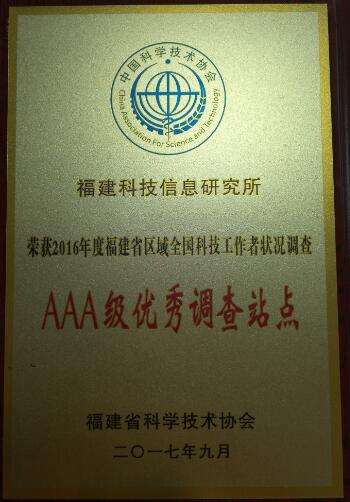 12月20日,省科協(xié)組織召開了2017年度福建省全國科技工作者狀況調(diào)查站點(diǎn)會(huì)議,對(duì)2016年度福建省優(yōu)秀調(diào)查站點(diǎn)進(jìn)行通報(bào)表彰。我所獲2016年度福建省區(qū)域全國科技工作者狀況調(diào)查AAA級(jí)優(yōu)秀調(diào)查站點(diǎn)。至此,我所已連續(xù)四年獲省科技工作者優(yōu)秀調(diào)查站點(diǎn)。此外,我所站點(diǎn)還獲得了“優(yōu)秀信息員”推薦資格與“優(yōu)秀調(diào)查員”推薦資格。