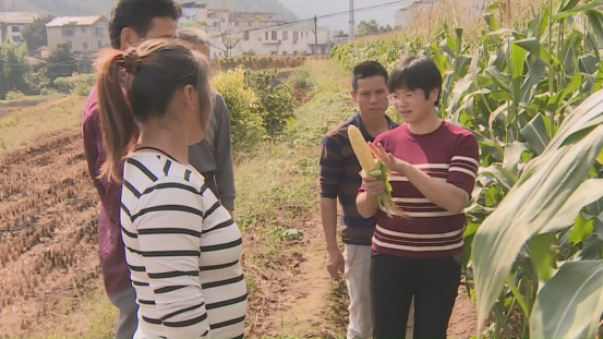 圖:華樹(shù)妹(右一)在指導(dǎo)農(nóng)戶進(jìn)行玉米種植
