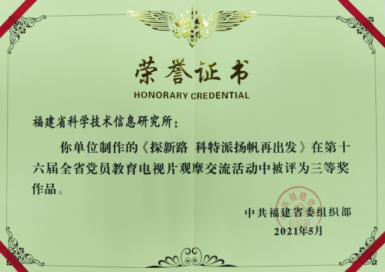 2020年以來,省委組織部開展了第十六屆全省黨員教育電視片觀摩交流活動,全省各地各部門高度重視,積極參與,省信息所拍攝制作的典型事跡片《探新路 科特派揚帆再出發(fā)》獲得三等獎。