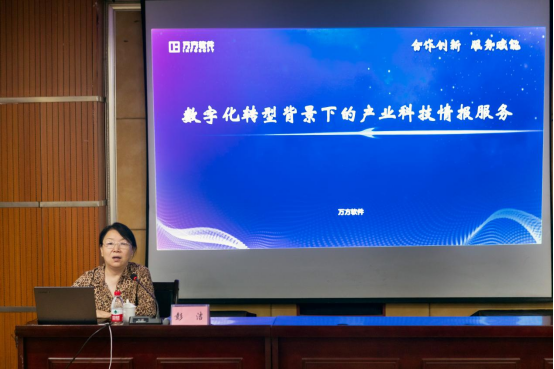 8月11日,為促進(jìn)科技情報工作順應(yīng)數(shù)字化轉(zhuǎn)型發(fā)展大勢,更好地發(fā)揮新時代科技情報的“耳目、尖兵、參謀”的作用,我所特邀請中國科學(xué)技術(shù)情報學(xué)會企業(yè)信息管理及情報工作專業(yè)委員會副主任委員、萬方數(shù)據(jù)股份有限公司副總經(jīng)理彭潔研究員作題為“數(shù)字化轉(zhuǎn)型背景下的產(chǎn)業(yè)科技情報服務(wù)”的講座。所領(lǐng)導(dǎo)張福山、王良熙、劉勇及全所專技人員參加本次講座,福州市科技情報研究所所長陳鋒、福州市科技創(chuàng)新服務(wù)中心主任倪添靈也應(yīng)邀參加。